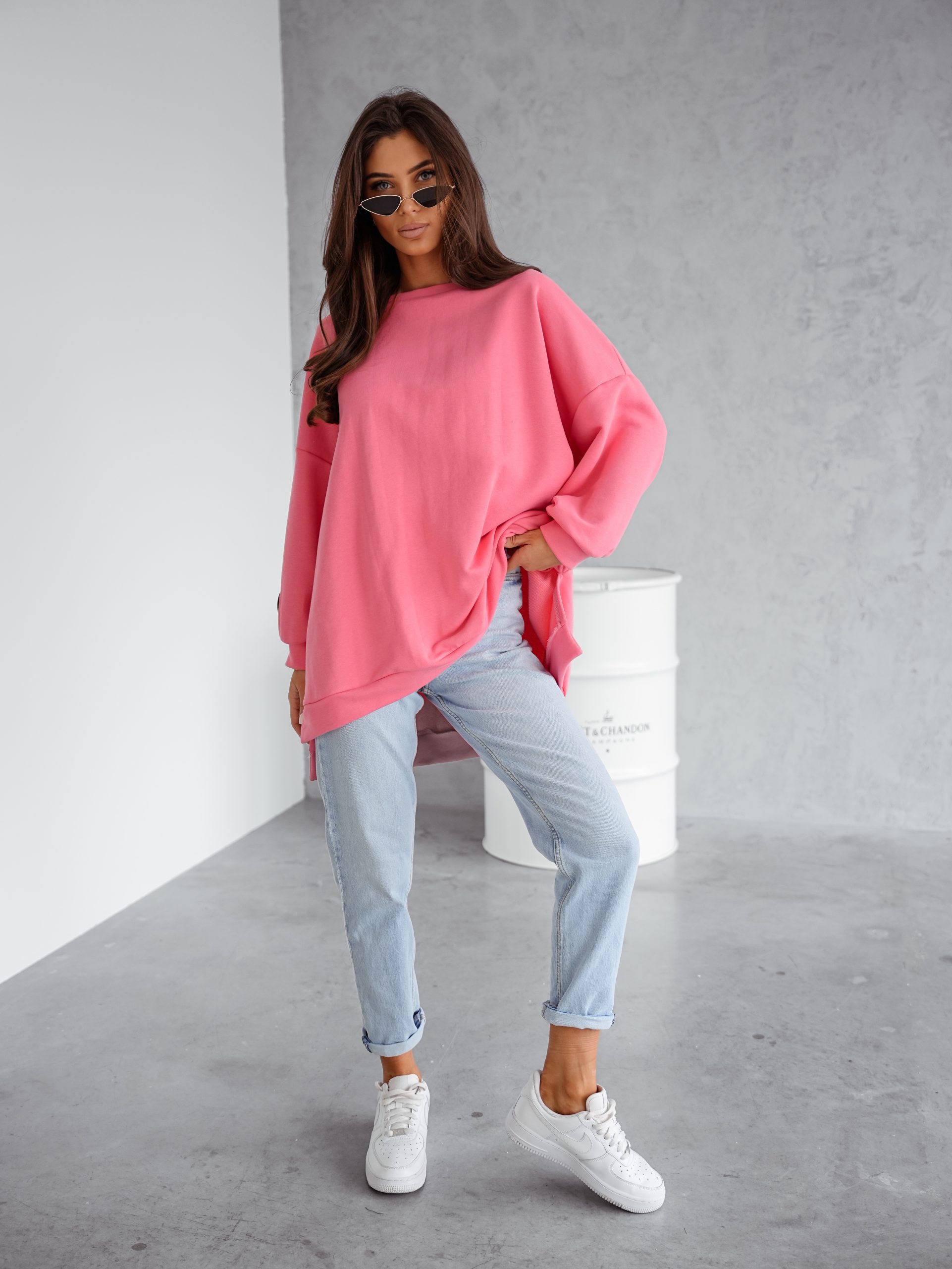 BLUZA duża oversize mucha me gusta ciemny pastelowy róż