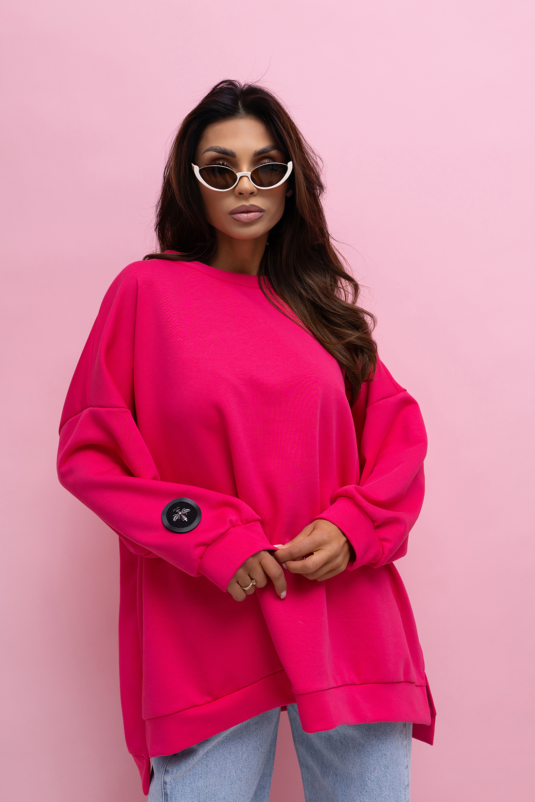 Najniższa cena 2026-02-09: 169.00 złModel idealny, pasujący na rozmiary XS-XXXL powraca w nowym roku w nowych, pięknych kolorach. Modny, wydłużany, oversize (trapezowy) krój. Uszyta z wysokiej jakości tkaniny dresowej. Dół i rękawy wykończony materiałowym ściągaczem.