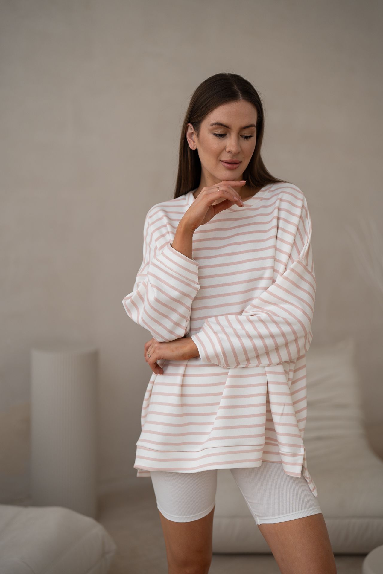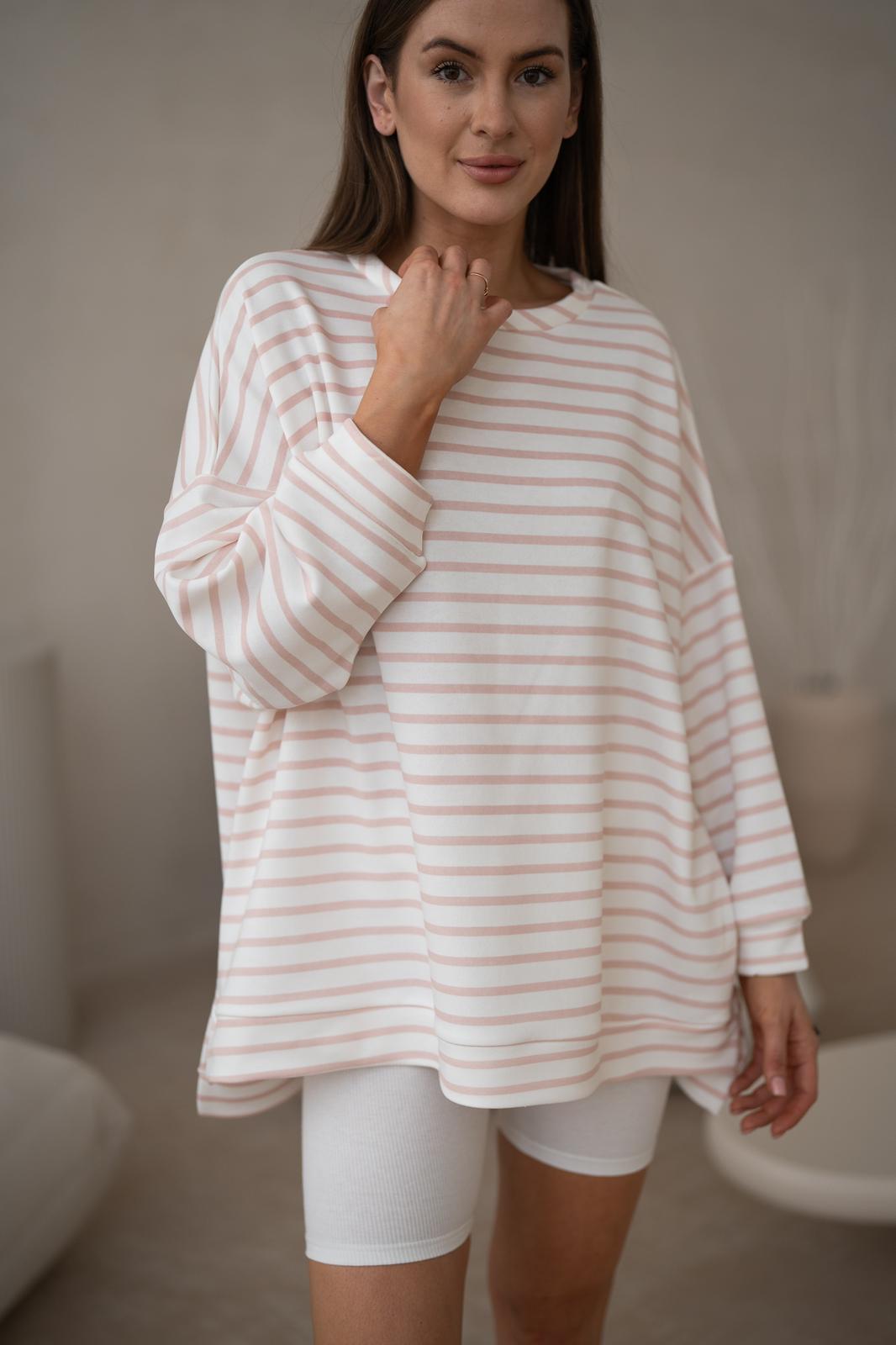 BLUZA duża oversize mucha me gusta paski biało-różowe