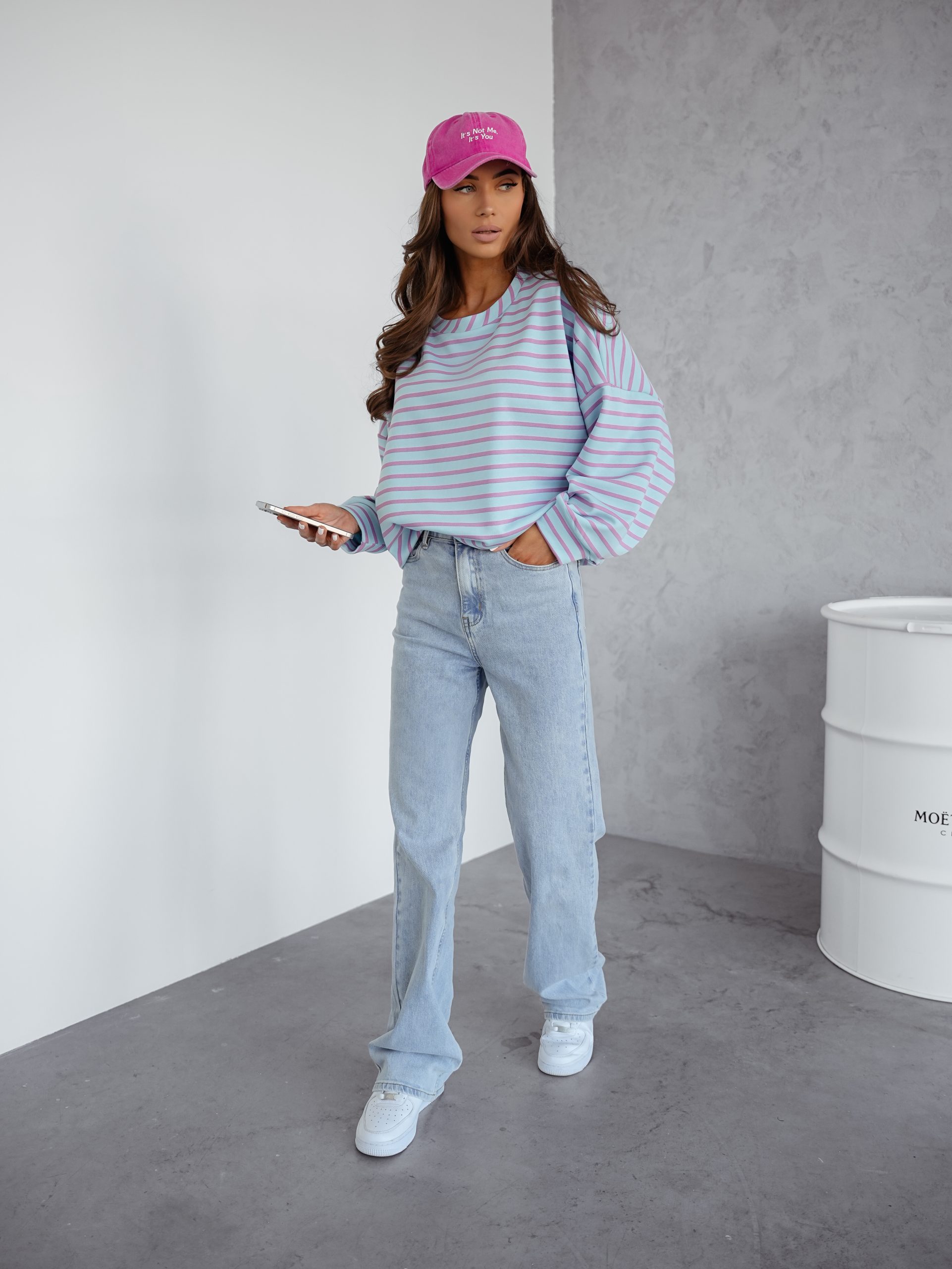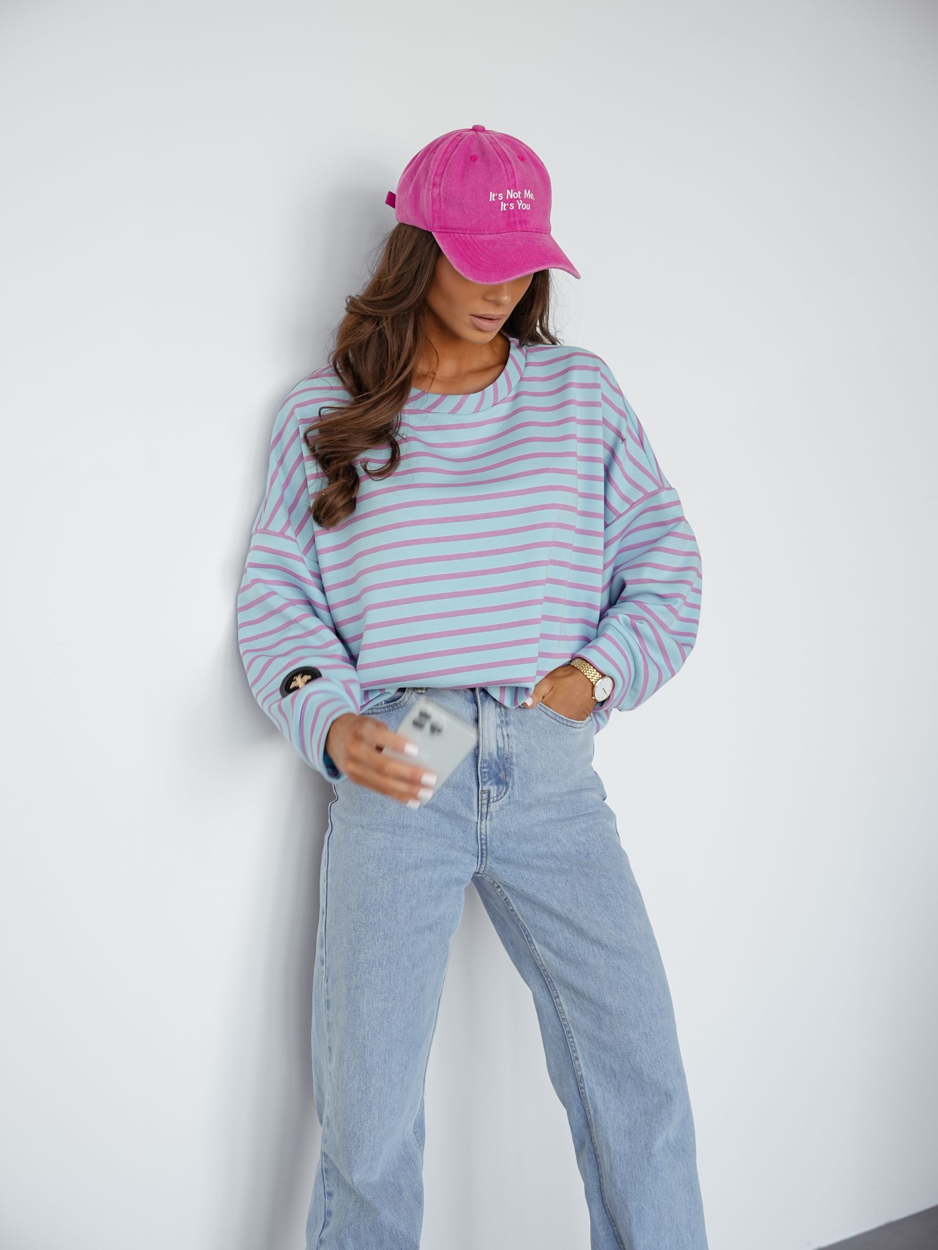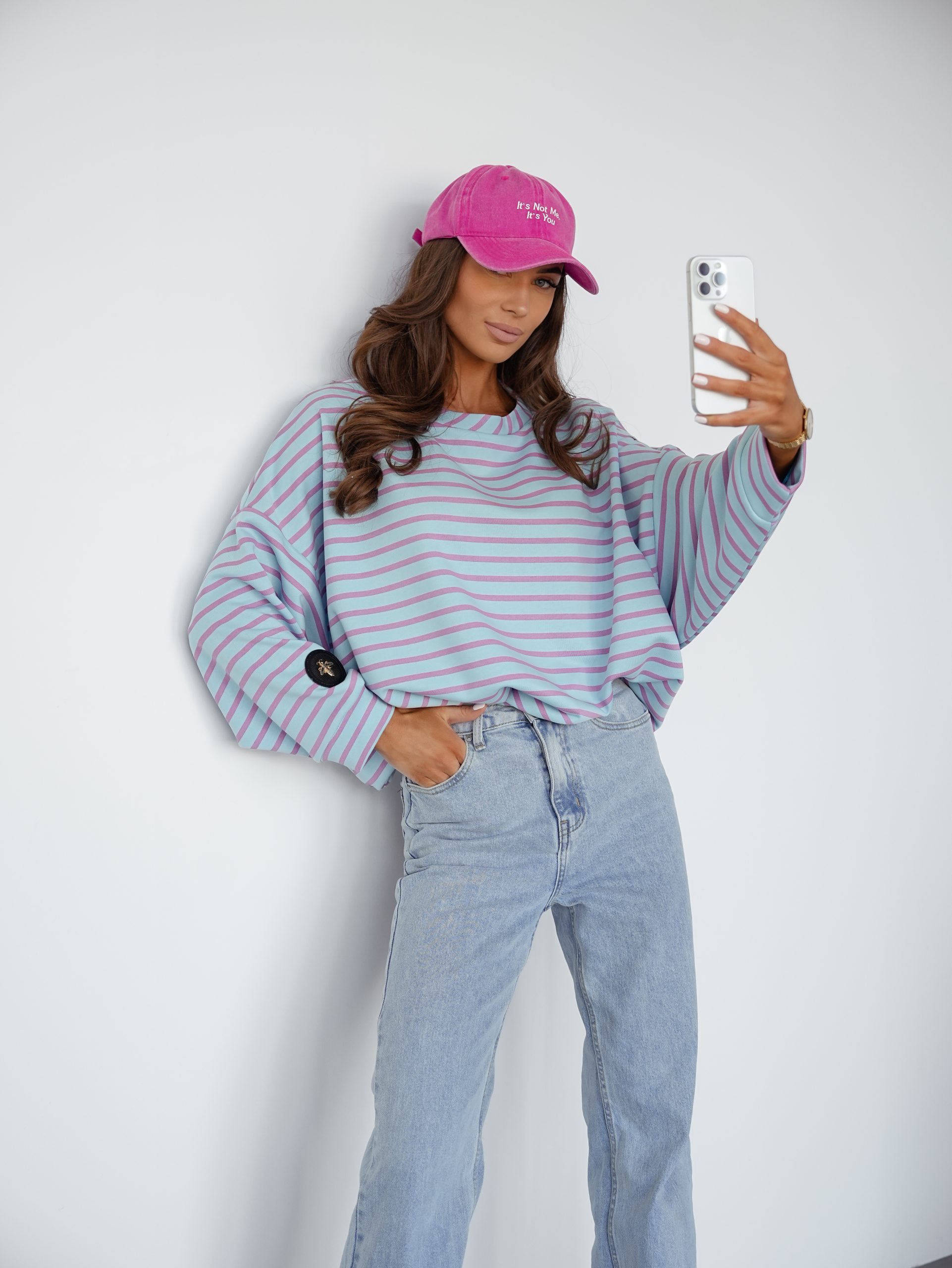 BLUZA duża oversize mucha me gusta paski błękitno-różowe