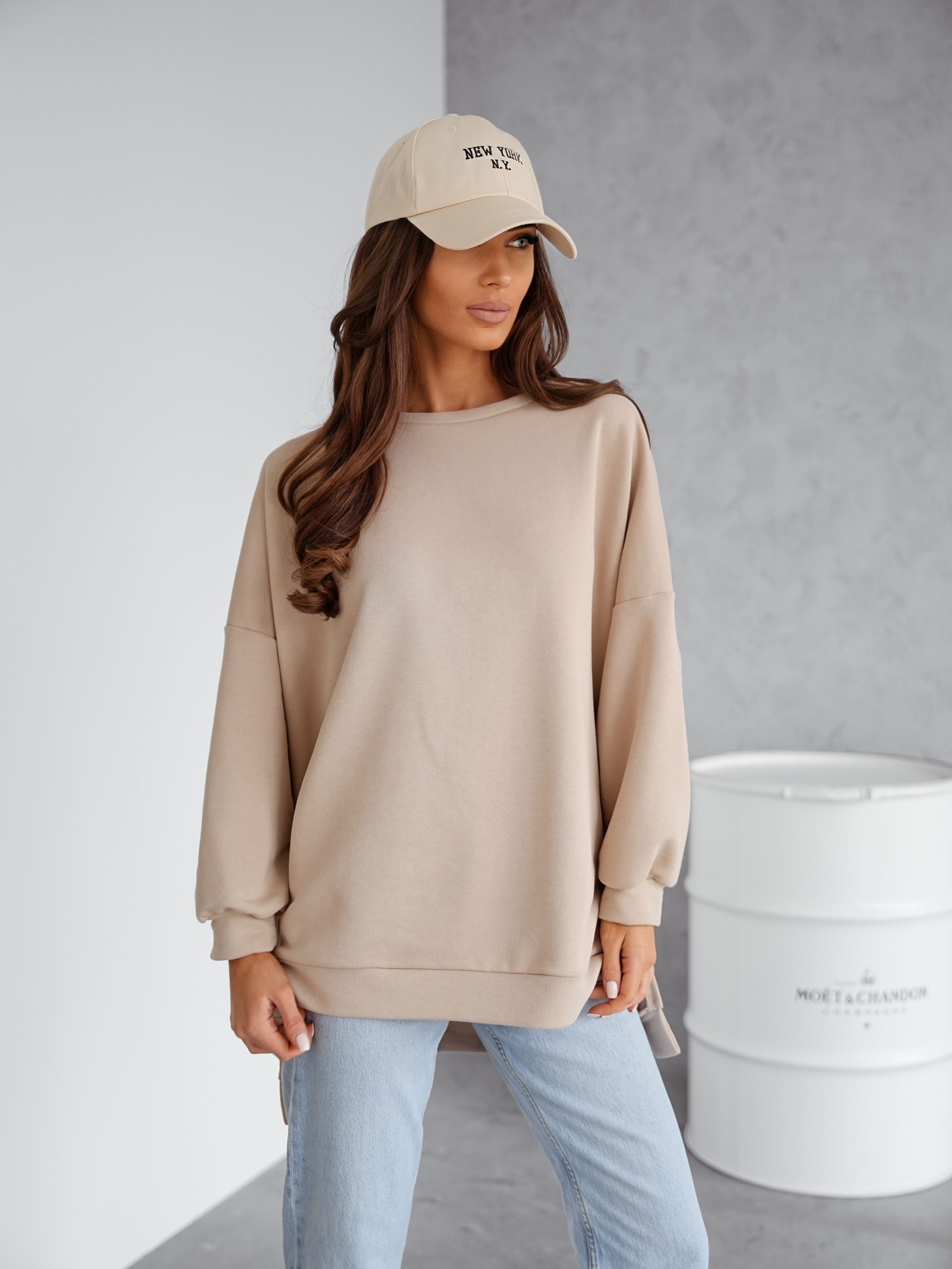 BLUZA duża oversize mucha me gusta pastelowy beż