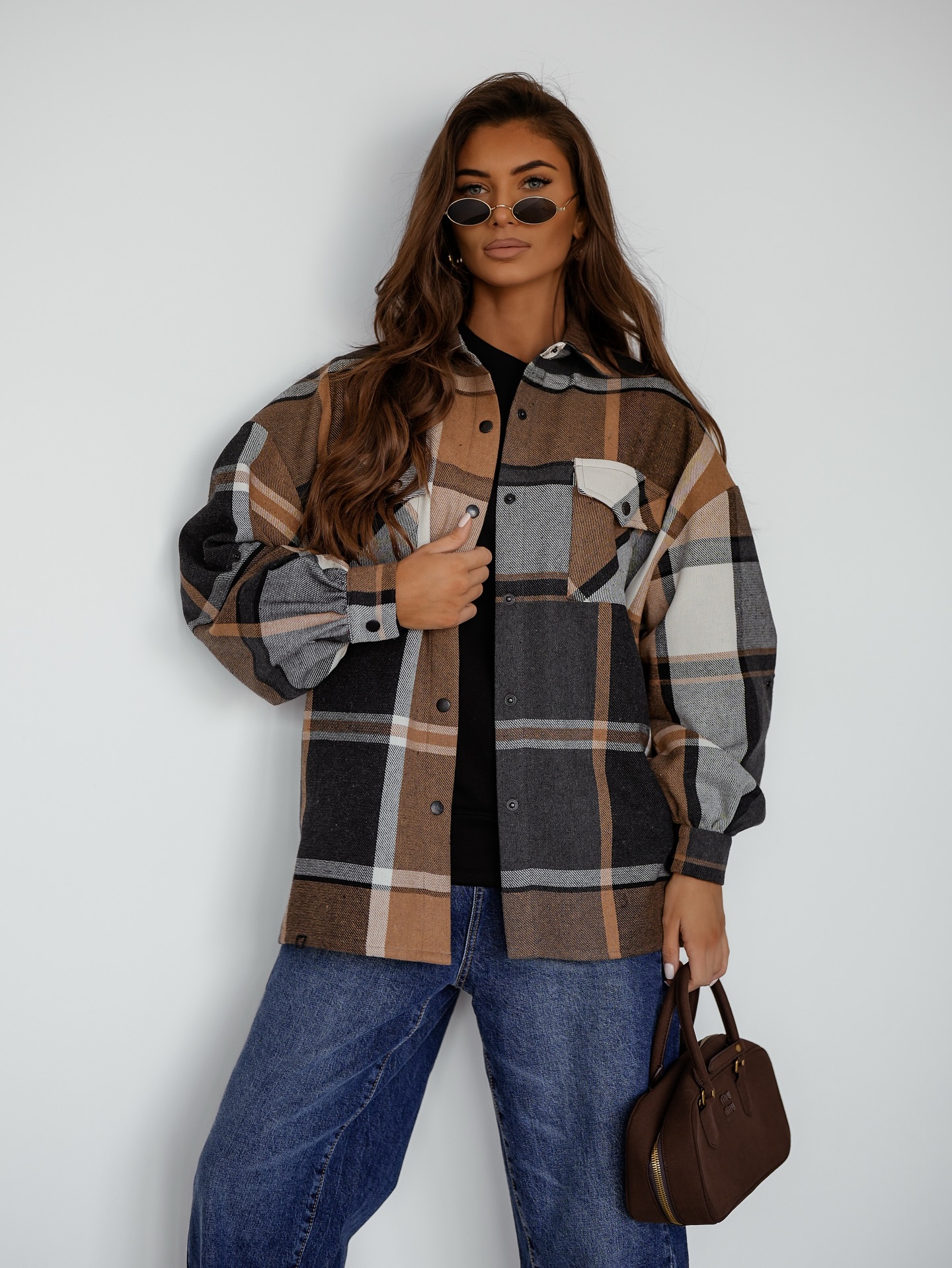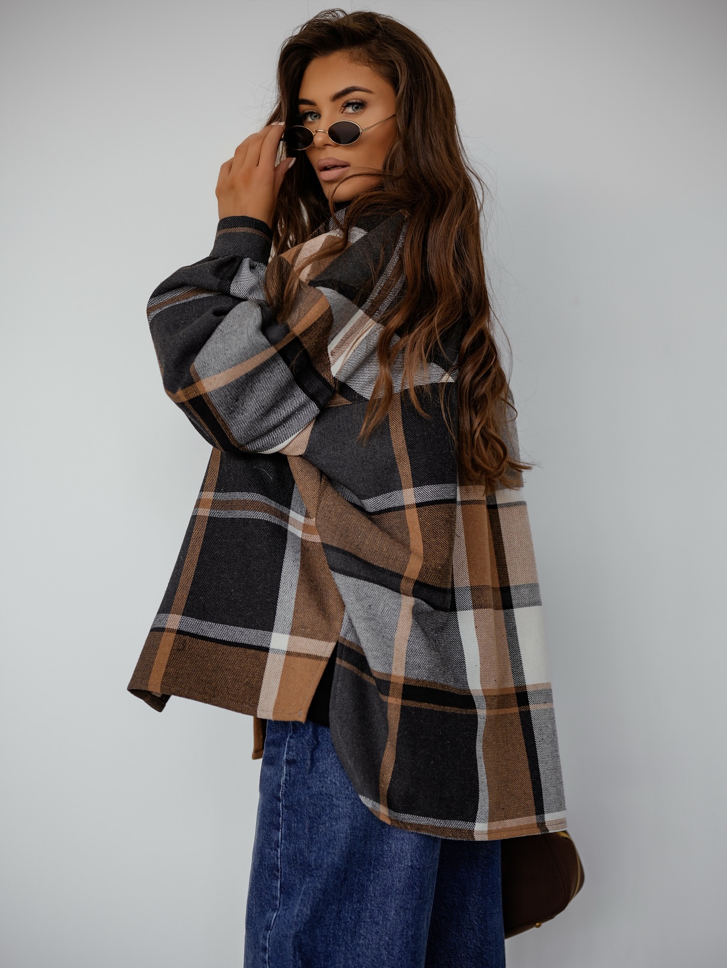 Koszula w kratę, która łączy luz i styl – idealna na jesienne dni.Miękka, ciepła tkanina i klasyczny oversize’owy krój sprawiają, że wygląda świetnie zarówno z jeansami, jak i legginsami.Noś ją jako koszulę lub lekką kurtkę.