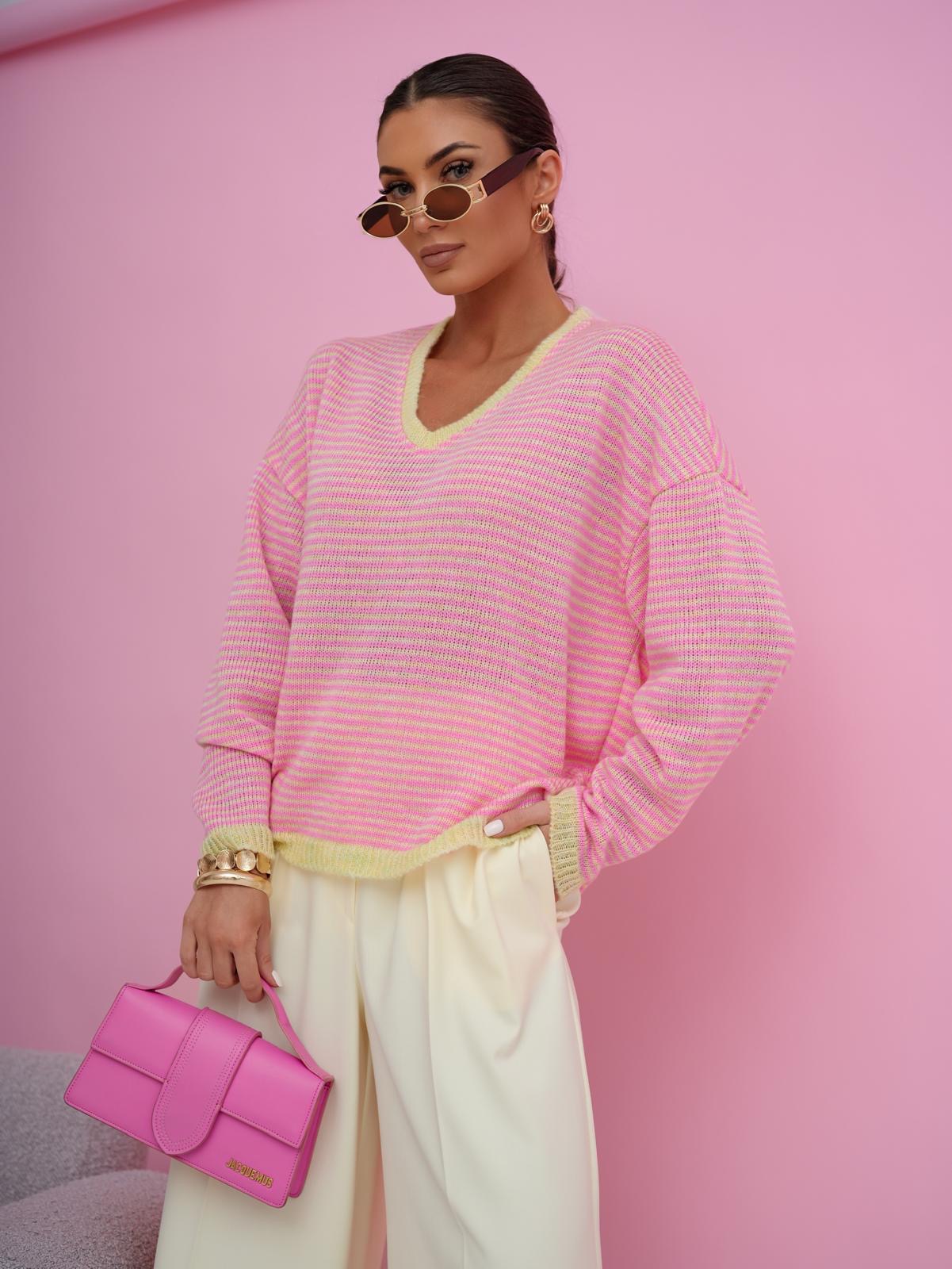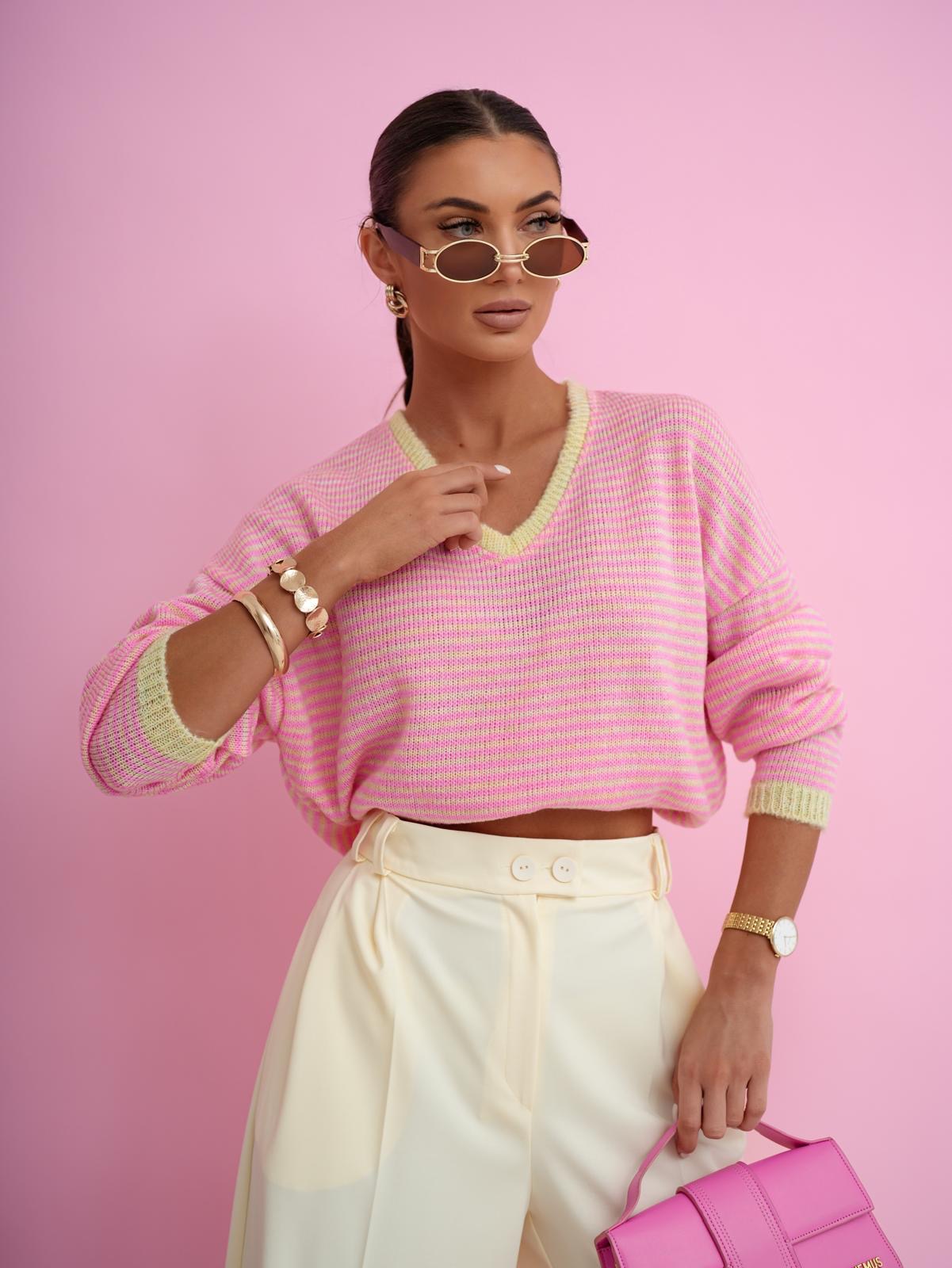 SWETER Z DEKOLTEM V PASKI ŻÓŁTO-RÓŻOWE ME GUSTA